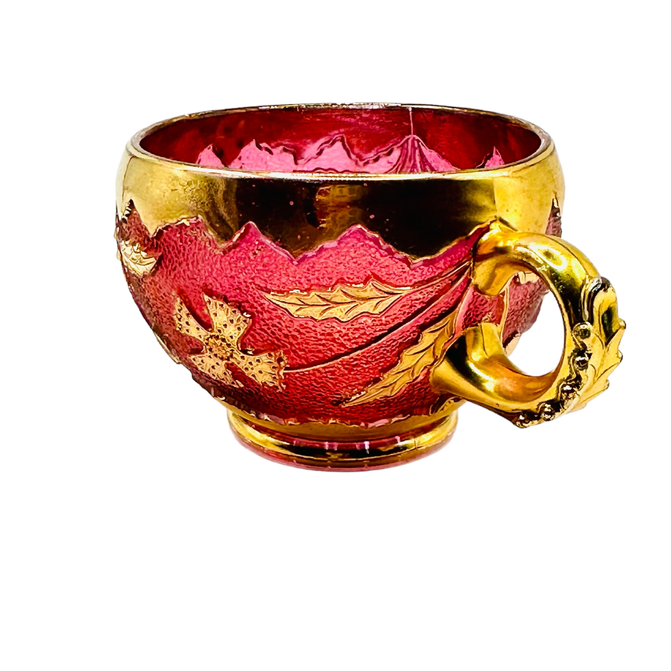 Vintage Red Cranberry and Gold Hand Painted Raised Detail Teacup